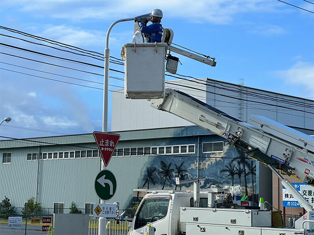建築物の電気工事の他に建設現場等の電線防護管取付工事、トンネルや道路の照明取付工事なども行います。